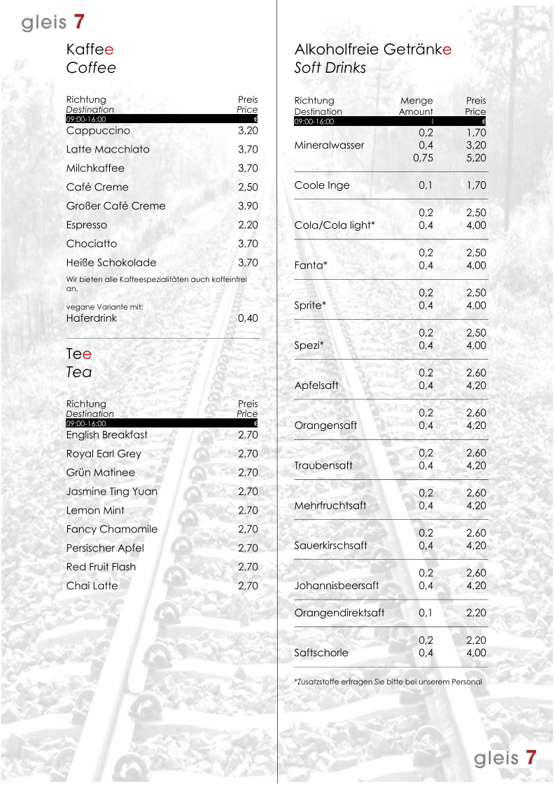 Café Gleis 7 - Caritasverband Worms e.V. Menu